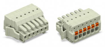 1-проводниковая розетка; нажимная кнопка; Push-in CAGE CLAMP®; 1,5; Шаг контактов 3,5 мм; 2-пол.; 100% защита от неправильного подсоединения; Поперечные фиксирующие рычаги; 1,50 mm²; светло-серые