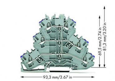 Трехуровневые клеммы; 6-проводные проходные клеммы; L:; без нанесения маркировки; подходят для исполнений Ex e II; внутреннее объединение; ввод проводника с фиолетовой маркировкой; для DIN-рейки 35 x 15 и 35 x 7,5; 2,5 мм²; Push-in CAGE CLAMP®; 2,50 mm²;