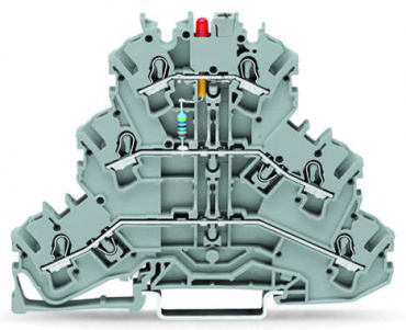 Компонентная клемма; трехуровн.; красный светодиод; тока; для DIN-рейки 35 x 15 и 35 x 7,5; 2,5 мм²; Push-in CAGE CLAMP®; 2,50 mm²; серые