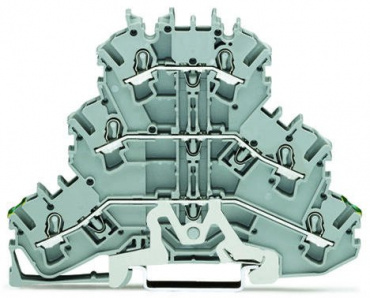 Трехуровневые клеммы; Клеммы с заземлением проводника / проходные / проходные клеммы; 2,5 мм²; PE/L/L; подходят для исполнений Ex e II; без нанесения маркировки; для DIN-рейки 35 x 15 и 35 x 7,5; Push-in CAGE CLAMP®; 2,50 mm²; серые