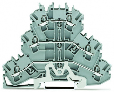 Трехуровневые клеммы; Экранированные / проходные / проходные клеммы; 2,5 мм²; экран/L/L; без нанесения маркировки; для DIN-рейки 35 x 15 и 35 x 7,5; Push-in CAGE CLAMP®; 2,50 mm²; серые