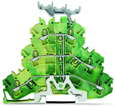 Трехуровневые клеммы; 6-проводные клеммы с заземлением; 2,5 мм²; PE; подходят для исполнений Ex e II; с нанесением маркировки; внутреннее объединение; для DIN-рейки 35 x 15 и 35 x 7,5; Push-in CAGE CLAMP®; 2,50 mm²; зеленые-желто