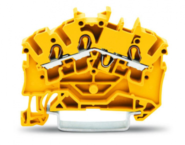 3-проводные проходные клеммы; 2,5 мм²; подходят для исполнений Ex e II; боковая и центральная маркировка; для DIN-рейки 35 x 15 и 35 x 7,5; Push-in CAGE CLAMP®; 2,50 mm²; желтые