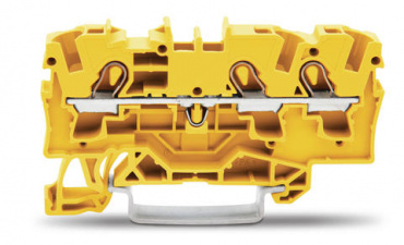 3-проводные проходные клеммы; 4 mm²; подходят для исполнений Ex e II; боковая и центральная маркировка; для DIN-рейки 35 x 15 и 35 x 7,5; Push-in CAGE CLAMP®; 4,00 mm²; желтые