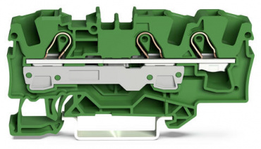 3-проводные проходные клеммы; 3; подходят для исполнений Ex e II; боковая и центральная маркировка; для DIN-рейки 35 x 15 и 35 x 7,5; Push-in CAGE CLAMP®; 6,00 mm²; зеленые