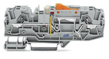 Клеммы с заземлением проводника и размыкателем; с возможностью тестирования; с оранжевым размыкателем; 24 В; 3; Push-in CAGE CLAMP®; 6,00 mm²; серые