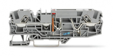 2-проводные клеммы с предохранителем; для автом. плоских предохранителей; с возможностью тестирования; со светодиодной индикацией перегорания предохранителя; 24 В; для DIN-рейки 35 x 15 и 35 x 7,5; 3; Push-in CAGE CLAMP®; 6,00 mm²; серые