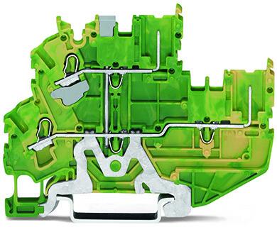 2-проводные / 2-контактные двухуровневые базовые клеммы; 2-проводные/ 2-контактные клеммы с заземлением; 2,5 мм²; PE; внутреннее объединение; для DIN-рейки 35 x 15 и 35 x 7,5; Push-in CAGE CLAMP®; 2,50 mm²; зеленые-желто