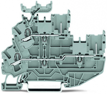 1-проводные / 1-контактные двухуровневые клеммы с розеткой; Проходные / проходные клеммы; 2,5 мм²; L/L; с нанесением маркировки; для DIN-рейки 35 x 15 и 35 x 7,5; Push-in CAGE CLAMP®; 2,50 mm²; серые