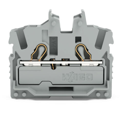 2-проводные миниатюрные проходные клеммы; с рабочими гнёздами; 2,5 мм²; с тестовым портом; боковая и центральная маркировка; Концевая клемма с монтажным фланцем; Push-in CAGE CLAMP®; 2,50 mm²; серые