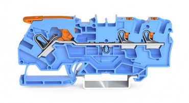 3-проводные проходные клеммы; с рычагом и нажимной кнопкой; 4 mm²; с тестовым портом; подходят для исполнений Ex i; боковая и центральная маркировка; для DIN-рейки 35 x 15 и 35 x 7,5; Push-in CAGE CLAMP®; 4,00 mm²; синие