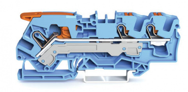 3-проводные проходные клеммы; с рычагом и нажимной кнопкой; 3; с тестовым портом; подходят для исполнений Ex i; боковая и центральная маркировка; для DIN-рейки 35 x 15 и 35 x 7,5; Push-in CAGE CLAMP®; 6,00 mm²; синие