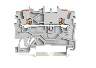 2-проводные проходные клеммы; с нажимной кнопкой; 1 мм²; с тестовым портом; боковая и центральная маркировка; для DIN-рейки 35 x 15 и 35 x 7,5; Push-in CAGE CLAMP®; 1,00 mm²; серые