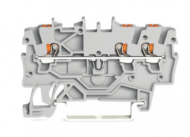 3-проводные проходные клеммы; с нажимной кнопкой; 1 мм²; с тестовым портом; боковая и центральная маркировка; для DIN-рейки 35 x 15 и 35 x 7,5; Push-in CAGE CLAMP®; 1,00 mm²; серые