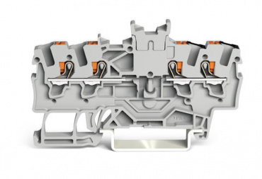 Двухпотенциальные клеммы; с нажимной кнопкой; 1,5; с двойным центральным маркировочным разъемом; для DIN-рейки 35 x 15 и 35 x 7,5; Push-in CAGE CLAMP®; 1,00 mm²; серые