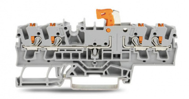 4-проводные клеммы с размыкателем / тестовые клеммы; с нажимной кнопкой; с возможностью тестирования; оранжевый размыкатель; для DIN-рейки 35 x 15 и 35 x 7,5; 2,5 мм²; Push-in CAGE CLAMP®; 2,50 mm²; серые
