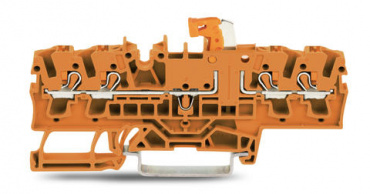 4-проводные клеммы с размыкателем / тестовые клеммы; с нажимной кнопкой; с возможностью тестирования; оранжевый размыкатель; для DIN-рейки 35 x 15 и 35 x 7,5; 2,5 мм²; Push-in CAGE CLAMP®; 2,50 mm²; оранжевые