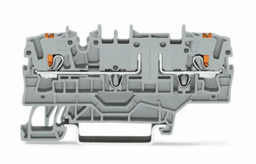 2-проводные базовые клеммы; с нажимной кнопкой; с дополнительной позицией для перемычки; для DIN-рейки 35 x 15 и 35 x 7,5; 2,5 мм²; Push-in CAGE CLAMP®; 2,50 mm²; серые