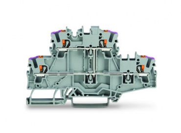 Двухуровневые клеммы; с нажимной кнопкой; 4-проводные проходные клеммы; L:; без нанесения маркировки; подходят для исполнений Ex e II; внутреннее объединение; ввод проводника с фиолетовой маркировкой; для DIN-рейки 35 x 15 и 35 x 7,5; 2,5 мм²; Push-in CAG