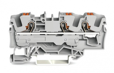 3-проводные проходные клеммы; с нажимной кнопкой; 3; с тестовым портом; боковая и центральная маркировка; для DIN-рейки 35 x 15 и 35 x 7,5; Push-in CAGE CLAMP®; 6,00 mm²; серые