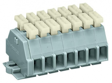 2-проводные клеммные колодки; 7-пол.; с обеих сторон с нажимными кнопками; с крепежными фланцами; для винтового или аналогичных типов крепления; Крепежное отверстие 3,2 мм Ø; 2,5 мм²; CAGE CLAMP®; 2,50 mm²; серые