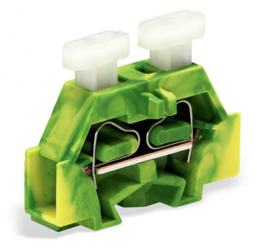 2-проводные клеммы; с обеих сторон с нажимной кнопкой; с крепежным фланцем; для винтового или аналогичных типов крепления; Крепежное отверстие 3,2 мм Ø; 2,5 мм²; CAGE CLAMP®; 2,50 mm²; зеленые-желто