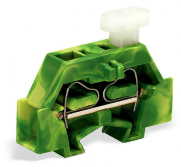 Компактные 2-проводные концевые клеммы; с одной стороны с нажимной кнопкой; без проходной защелкивающейся ножки для крепления; для клеммных колодок с защелкивающимися монтажными ножками; 2,5 мм²; CAGE CLAMP®; 2,50 mm²; зеленые-желто