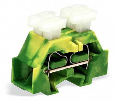 4-проводные клеммы; с обеих сторон с нажимными кнопками; с защелкивающейся монтажной ножкой; для толщины пластины 0,6 - 1,2 мм; Крепежное отверстие 3,5 мм Ø; 2,5 мм²; CAGE CLAMP®; 2,50 mm²; зеленые-желто
