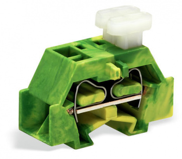 Компактные 4-проводные концевые клеммы; с одной стороны с нажимными кнопками; без проходной защелкивающейся ножки для крепления; для клеммных колодок с защелкивающимися монтажными ножками; 2,5 мм²; CAGE CLAMP®; 2,50 mm²; зеленые-желто