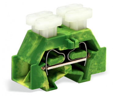Компактные 4-проводные концевые клеммы; с обеих сторон с нажимными кнопками; без проходной защелкивающейся ножки для крепления; для клеммных колодок с защелкивающимися монтажными ножками; 2,5 мм²; CAGE CLAMP®; 2,50 mm²; зеленые-желто