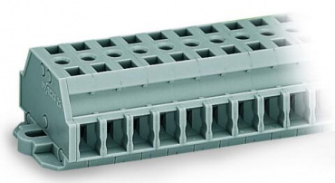 2-проводные клеммные колодки; 9-пол.; без кнопок; с крепежными фланцами; для винтового или аналогичных типов крепления; Крепежное отверстие 3,2 мм Ø; 2,5 мм²; CAGE CLAMP®; 2,50 mm²; серые