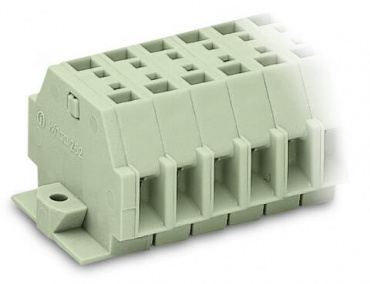 2-проводные клеммные колодки; подходят для исполнений Ex e II; 9-пол.; без кнопок; с защелкивающимися монтажными ножками; для толщины пластины 0,6 - 1,2 мм; Крепежное отверстие 3,5 мм Ø; 4 mm²; CAGE CLAMP®; 4,00 mm²; светло-серые