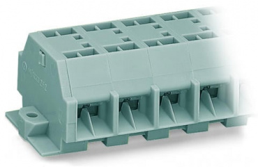 4-проводная клеммная колодка; 5-пол.; без кнопок; с крепежными фланцами; для винтового или аналогичных типов крепления; Крепежное отверстие 3,2 мм Ø; 4 mm²; CAGE CLAMP®; 4,00 mm²; серые