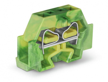 2-проводные клеммы; без кнопок; с крепежным фланцем; для винтового или аналогичных типов крепления; Крепежное отверстие 3,2 мм Ø; 4 mm²; CAGE CLAMP®; 4,00 mm²; зеленые-желто