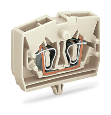 2-проводные клеммы; подходят для исполнений Ex e II; без кнопок; с защелкивающейся монтажной ножкой; для толщины пластины 0,6 - 1,2 мм; Крепежное отверстие 3,5 мм Ø; 2,5 мм²; CAGE CLAMP®; 2,50 mm²; светло-серые