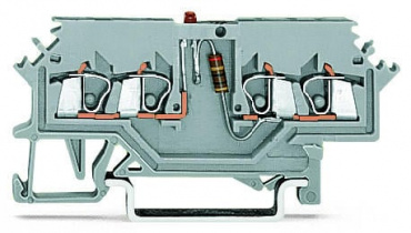 Компонентная клемма; 4-проводн.; красный светодиод; тока; для DIN-рейки 35 x 15 и 35 x 7,5; 1,5; CAGE CLAMP®; 1,50 mm²; серые