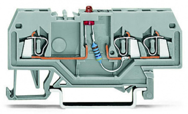 Компонентная клемма; 3-проводн.; красный светодиод; тока; для DIN-рейки 35 x 15 и 35 x 7,5; 1,5; CAGE CLAMP®; 1,50 mm²; серые