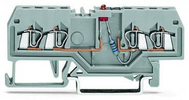 Компонентная клемма; 4-проводн.; красный светодиод; тока; для DIN-рейки 35 x 15 и 35 x 7,5; 1,5; CAGE CLAMP®; 1,50 mm²; серые