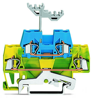 Двухуровневые клеммы; Клеммы с заземлением проводника / проходные клеммы; 2,5 мм²; с нанесением маркировки; для DIN-рейки 35 x 15 и 35 x 7,5; CAGE CLAMP®; 2,50 mm²; желто-зеленые/синие