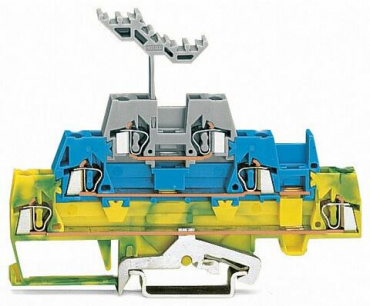 Трехуровневые клеммы; Экранированные / проходные / проходные клеммы; 2,5 мм²; с нанесением маркировки; для DIN-рейки 35 x 15 и 35 x 7,5; CAGE CLAMP®; 2,50 mm²; желто-зеленые/синие/серые