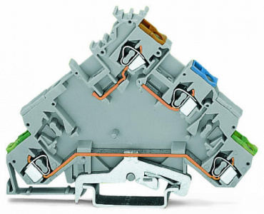 4-проводные клеммы питания датчика; с заземляющим контактом; с цветн. отверст. для ввода проводников; 2,5 мм²; CAGE CLAMP®; 2,50 mm²; серые
