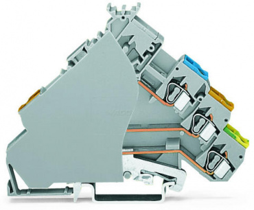 3-проводные клеммы для подключения исполнительных устройств; с заземляющим контактом; с цветн. отверст. для ввода проводников; 2,5 мм²; CAGE CLAMP®; 2,50 mm²; серые
