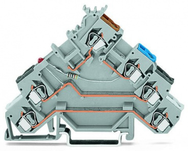 4-проводные клеммы с датчиком; красный светодиод; для датчиков NPN-переключения (отрицательного); с цветн. отверст. для ввода проводников; 2,5 мм²; CAGE CLAMP®; 2,50 mm²; серые