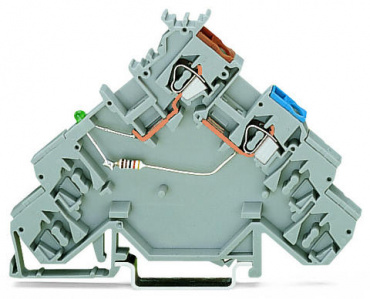 4-проводные клеммы питания датчика; зеленый светодиод; для датчиков PNP-переключения (положительного); Подвод питания на стороне датчика; с цветн. отверст. для ввода проводников; 2,5 мм²; CAGE CLAMP®; 2,50 mm²; серые