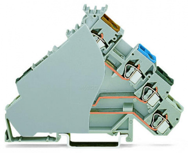 4-проводные клеммы с датчиком; для датчиков PNP-переключения (положительного); для штекерных предохранителей; с серой торцевой пластиной; с цветн. отверст. для ввода проводников; 2,5 мм²; CAGE CLAMP®; 2,50 mm²; серые