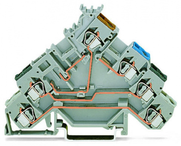 4-проводные клеммы с датчиком; для датчиков PNP-переключения (положительного); для штекерных предохранителей; без торцевой пластины; с цветн. отверст. для ввода проводников; 2,5 мм²; CAGE CLAMP®; 2,50 mm²; серые