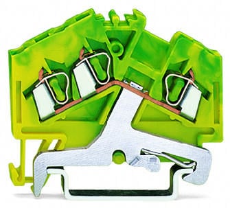 3-проводные клеммы с заземлением; 2,5 мм²; подходят для исполнений Ex e II; центральная маркировка; для DIN-рейки 35 x 15 и 35 x 7,5; CAGE CLAMP®; 2,50 mm²; зеленые-желто
