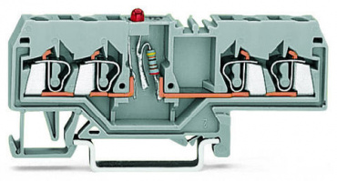 Компонентная клемма; 4-проводн.; красный светодиод; тока; для DIN-рейки 35 x 15 и 35 x 7,5; 2,5 мм²; CAGE CLAMP®; 2,50 mm²; серые