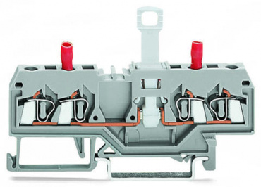 2-проводные клеммы с размыкателем / тестовые клеммы; без поворотного ножевого размыкателя; с защищенными от случайных прикосновений тестовыми разъемами; Тестовый разъем, красный; для DIN-рейки 35 x 15 и 35 x 7,5; 2,5 мм²; CAGE CLAMP®; 2,50 mm²; серые