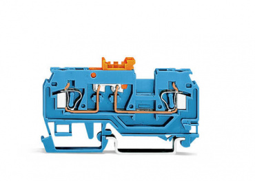 2-проводные клеммы с размыкателем / тестовые клеммы; с поворотным ножевым размыкателем; с тестовым портом; оранжевый размыкатель; подходят для исполнений Ex i; для DIN-рейки 35 x 15 и 35 x 7,5; 2,5 мм²; CAGE CLAMP®; 2,50 mm²; синие